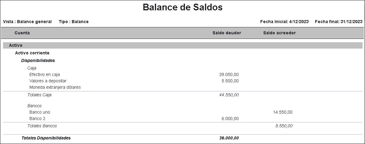 - Balance de Saldos